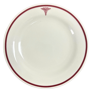 Homer Laughlin Hospital Service Plate – Red Band with Caduceus Crest
