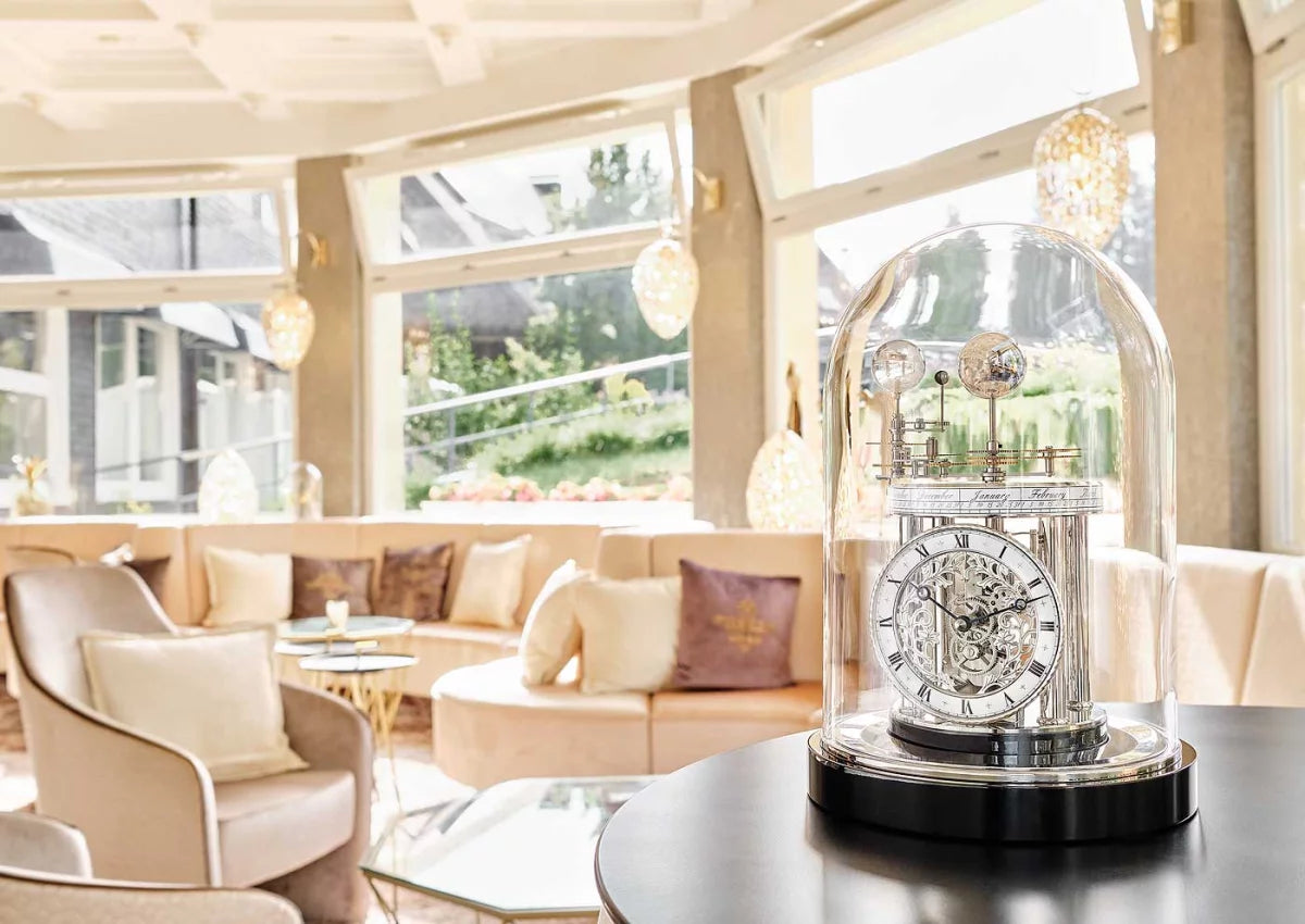 Celebrate the ingenuity of celestial navigation with this extraordinary Astrolabium, a stunning homage to the "Himmelsmaschinen" (Heaven's Machines) created by 18th-century clockmaker Philipp Matthäus Hahn. Designed by the legendary Richard Hermle as the crowning achievement of his clock-making career, this intricate timepiece merges celestial mechanics with precision engineering and timeless artistry.